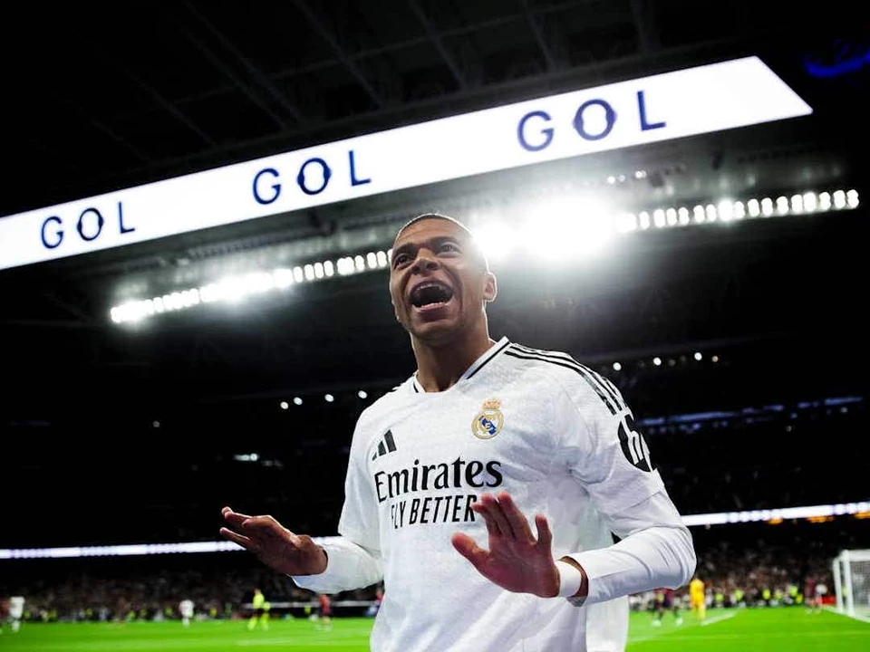 基利安·姆巴佩(左)和维尼修斯·儒尼奥尔将带领皇家马德里进攻巴塞罗那。/ IMAGO/新华社