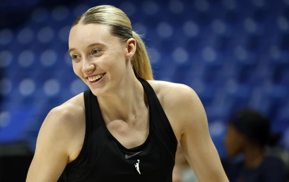 达拉斯飞翼队的这位球星将这件衬衫与同样来自该品牌的配套牛仔短裤以及粉色耐克运动鞋搭配,运动鞋包括粉色鞋带和白色橡胶外底。她将头发扎成传统的比赛日马尾辫,用一个黑色背包携带必需品。